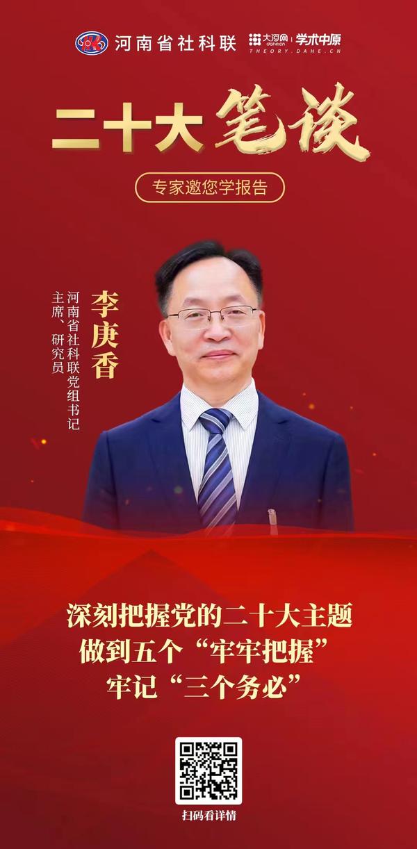为深入学习宣传贯彻党的二十大精神,河南省社科联推出二十大特别策划——“聚焦二十大·一起学报告——全省社科界学习宣传贯彻党的二十大精神专家谈”,邀请社科界专家学者结合各自研究领域学报告、谈认识,说体会、讲道理。大河网陆续推出,以飨读者。